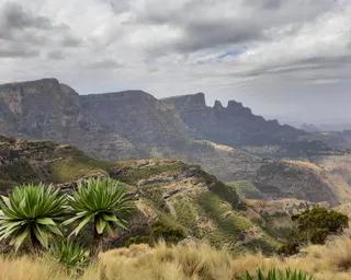 The Simien Mountains National Park was officially established in 1966 with the objective of preserving its unique Afro-alpine ecosystems and high number of endemic species of birds and wildlife that include the Ethiopian wolf, gelada baboon and walia ibex. Dubbed as the "Roof of Africa," Ethiopia has the highest elevated portion of landmass on the continent. The Simien Mountains are part of this landmass with unparalleled scenery. It was declared as a World Heritage site by UNESO in 1978. The region includes many summits above 4,000 mts and culminates in the highest point in Ethiopia and fourth highest peak in Africa, Mount Ras Dashen (4543 masl.) Its dramatic topography is the result of the erosion of basalt lavas that have been calculated to be nearly 3,000 mts thick. It is an ideal place for nature lovers and trekkers. The rainy season runs from June to September so travelling can be difficult during this period. November and December are the coldest months when the temperature is likely to go below freezing. Quote taken from Rosita Forbes, 1925 "From Red Sea to Blue Nile - A thousand Miles of Ethiopia." "The most marvelous of all Abyssinian landscapes opened before us, as we looked across a gorge that was clouded amethyst to the peaks of Simien. A Thousand, Thousand years ago, when the old god reigned in Ethiopia, they must have played chess with those stupendous crags, for we saw bishops' miters cut in lapis lazuli, castles with the ruby of approaching sunset on their turrets, an emerald knight where the forest crept up on to the rock and, far away, a king, crowned with sapphire and guarded by a row of pawns."